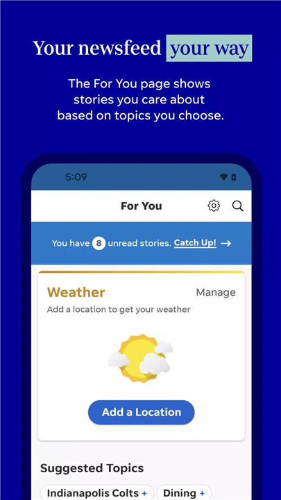 Yes, the app features a personalized "For You" page that lets you tailor your news feed to your favorite topics.