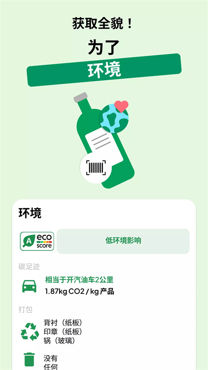 Open Food Facts不仅关心你的健康,也关注地球!它会显示食品的碳足迹和包装的回收信息,帮助你做出更加环保的选择。