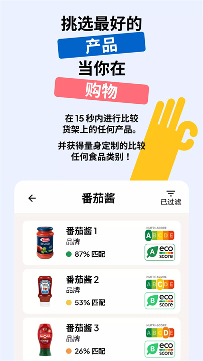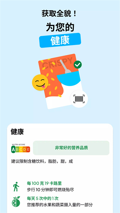 每个食品都有一个健康评分(从A到E),让你轻松判断它的营养质量。越靠近A,越是健康选择,助你做出明智决定。
