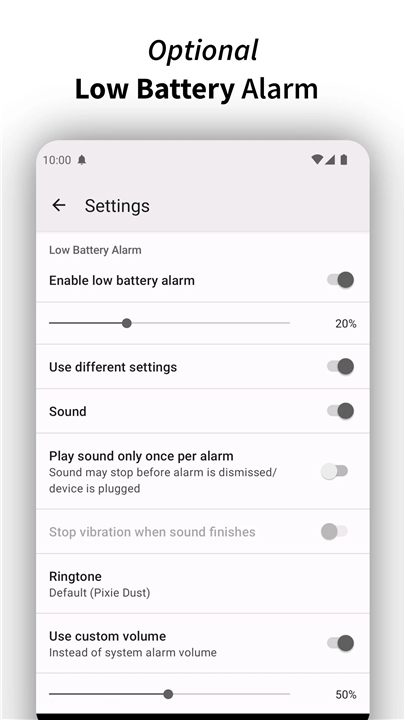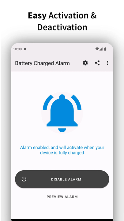 Full Battery Charge Alarm keeps things simple and effective — helping you care for your device and the environment, one charge at a time.
