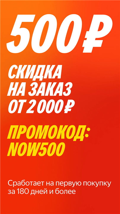 Promo code NOW500. It will give you a discount of 500 RUR if you order for 2,000 RUR or more Download the latest version of Яндекс Маркет: онлайн-магазин to enjoy new features and updates immediately!