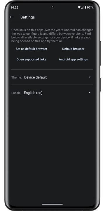 This section includes buttons for opening and sharing links. If a link can be accessed through multiple applications, an arrow will appear, allowing you to make a selection. This feature cannot be disabled.