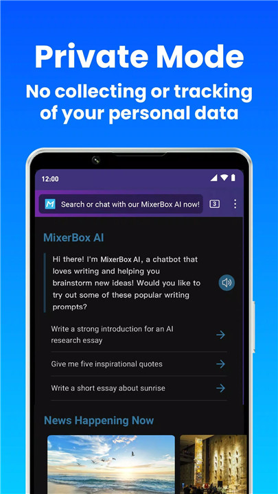 Privacy is a top priority with MixerBox AI. The app never collects or tracks your personal data, and its secure tracking protection blocks unwanted pop-ups and trackers. Browse with peace of mind, knowing your personal information is safe and secure.