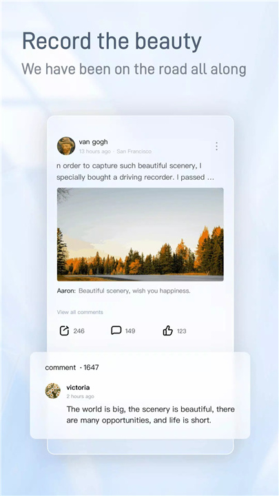 这款应用程序可在手机端查汽车出行记录,软件与设备连接后,就能随时查看记录仪同步上传内容,给众多车主行车带来便利,适配多汽车品牌。