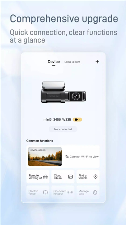 DDPAI支持通过 Wi-Fi 直连 1080P 全高清行车记录仪,进而实现预览、回放以及图片视频下载等一系列操作。