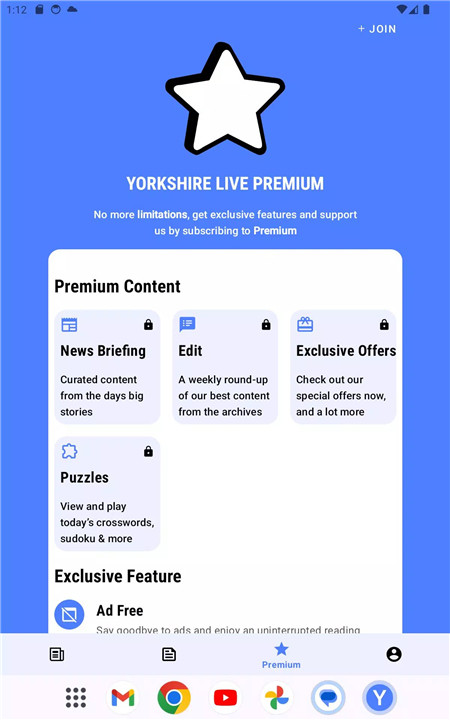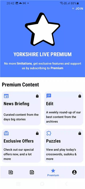 Premium unlocks unlimited articles, ad-free browsing, exclusive offers, curated story digests, and access to puzzles like crosswords and sudoku.