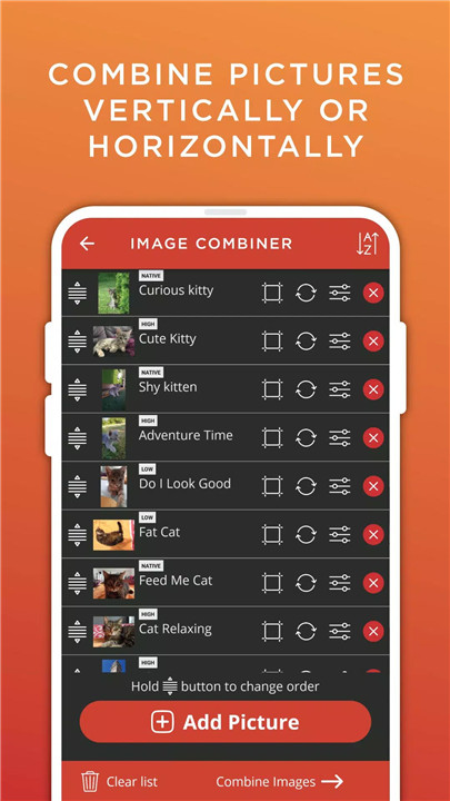 Combine or merge multiple pictures either vertically or horizontally with ease.