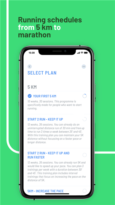 • Simply lace up your running shoes, follow the tailored instructions, and watch yourself progress toward your goals—no matter how big or small.