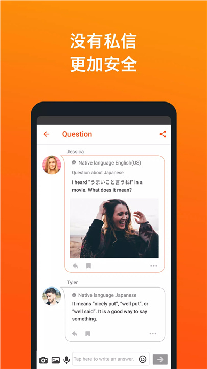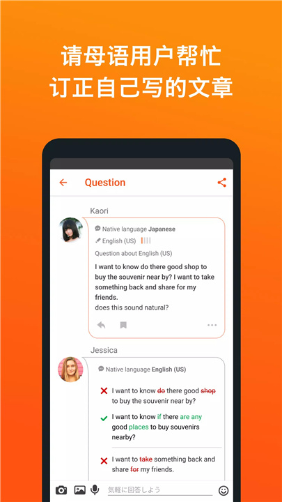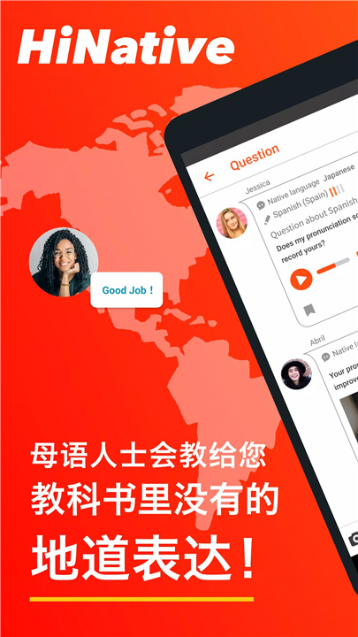 外语交流应用程序——HiNative - 语言学习,面向全英文、日文、韩文等诸多外语提问,您毫无负担地提出疑问,我们将以最快速度邀请到母语为这些语言的外籍人士进行响应,为您解答疑惑!