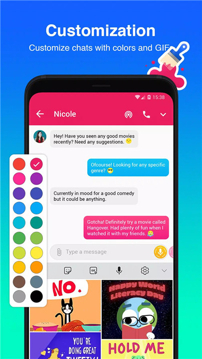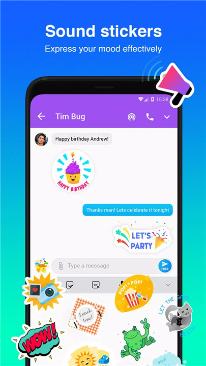 Express yourself with sound stickers, GIFs, and emojis. Personalize your chats by selecting different colors or using your favorite photos as backgrounds. You can even choose unique notification sounds for each chat!