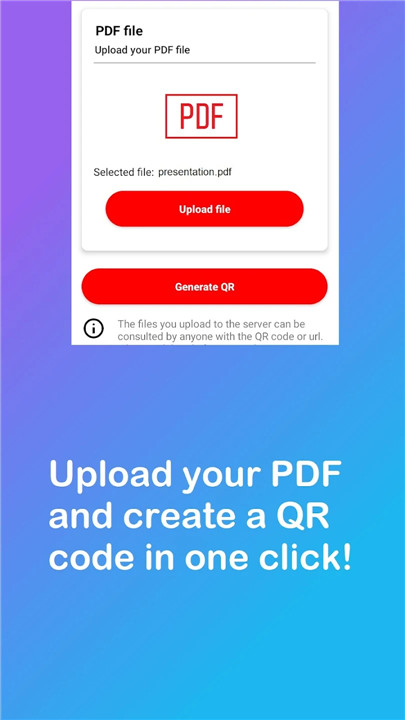 With PDF to QR, sharing documents is a breeze. Improve your workflow and enhance the accessibility of your PDF files using QR code technology. Download the app today and start sharing in a whole new way!