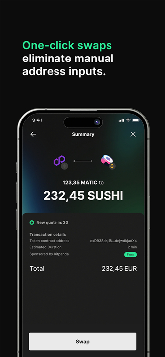 • One-click swaps with zero technical setup.