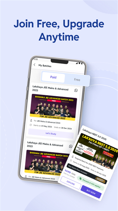 • Competitive Exams – In-depth training for IIT-JEE, NEET, SSC, UPSC, and more, backed by live sessions, test series, and targeted practice.