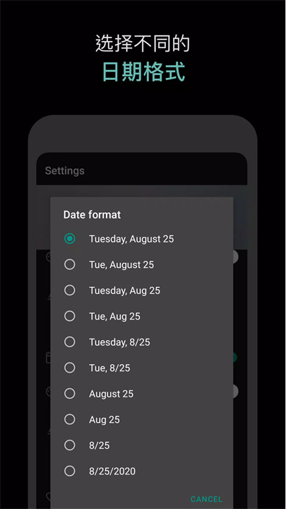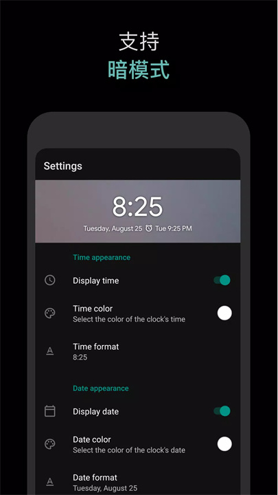 颜色选择:通过三原色选择器,从数百万种颜色中选取时间和日期的显示色。