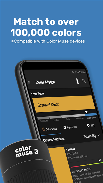Works with the Color Muse tool. Scan, compare, and match colors to products. Download the latest version of Color Muse to enjoy new features and updates immediately!