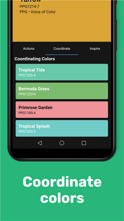 • The app then connects to an extensive database of over 100,000 colors from leading brands, enabling you to find perfect matches, coordinates, and complements in seconds.