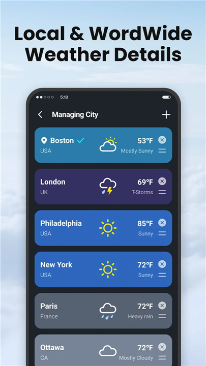 • Say goodbye to the frustration of unpredictable weather and enjoy smooth, hassle-free planning for your day, week, or upcoming trips.