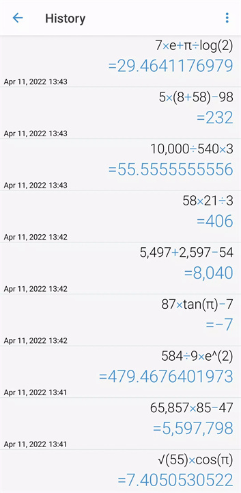 点击“计算历史记录”图标即可查看并选择之前的计算公式。
