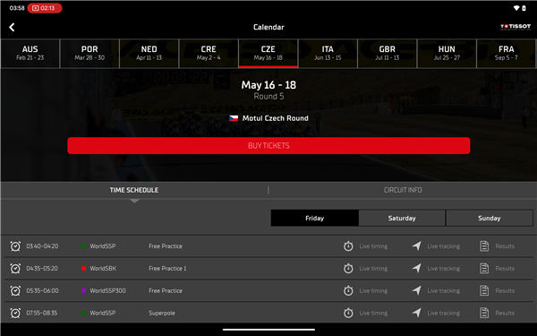 As the only app offering Live Audio Commentary, Live Tracking, and Live Timing for every session—from Free Practice to Tissot Superpole and every race—you’ll experience the championship like never before.