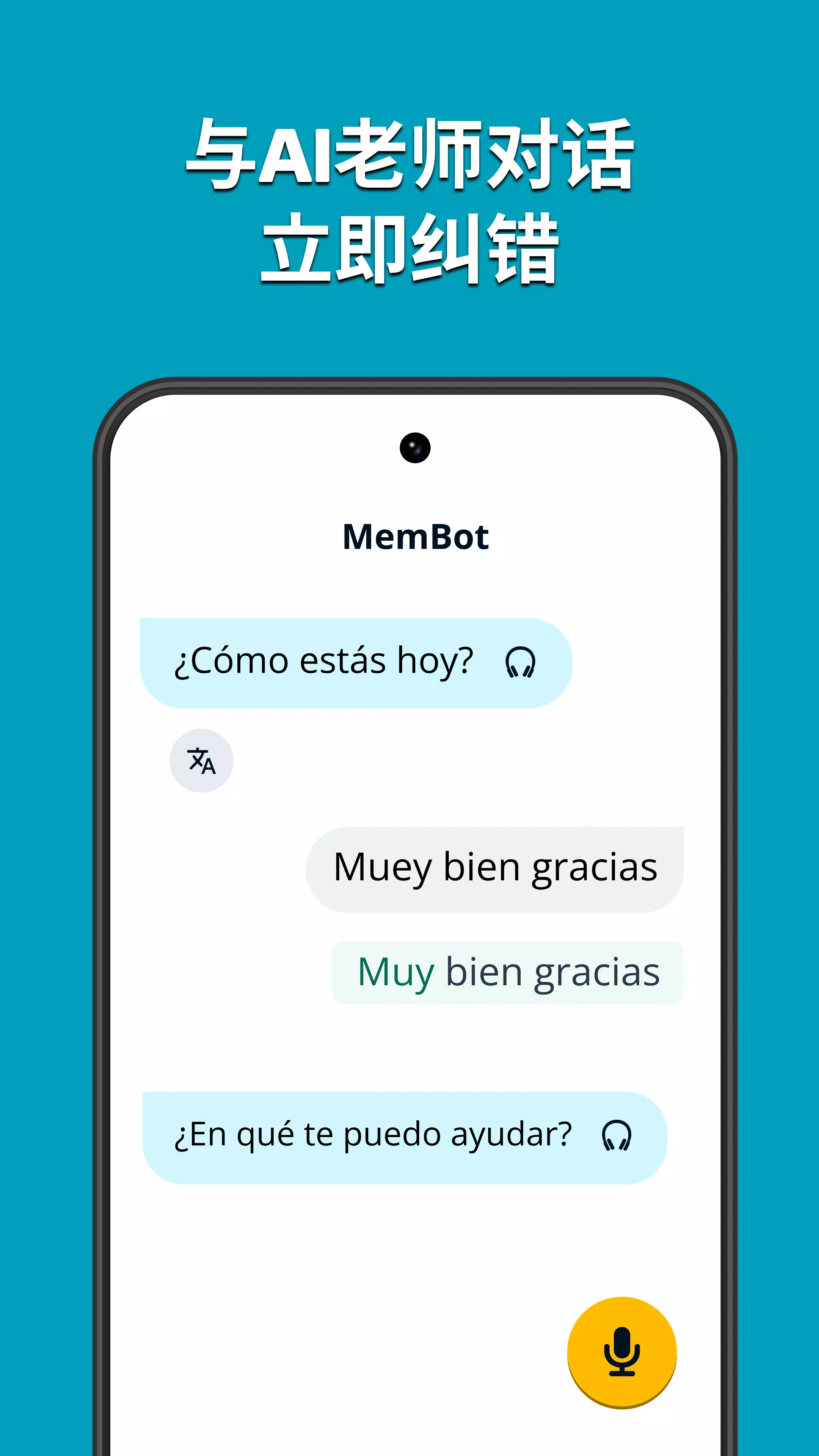 这是首个AI语伴,旨在为用户提供低压力的口语练习环境。MemBot会模拟不同场景,帮助用户在放松的氛围中练习语言,提升自信心。