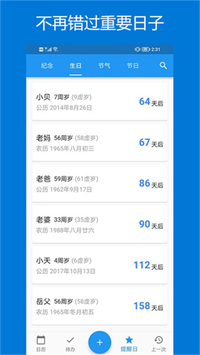 2- 选择生日、纪念日、排班等提醒;
