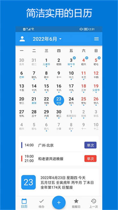 这款应用不仅提供日程安排和提醒功能,还可以帮助用户管理待办事项。你可以设置公历或农历的提醒,选择合适的提醒方式,帮助自己高效规划每日任务。待办清单功能支持四象限视图和番茄时钟,帮助你更好地组织任务,提升工作效率。纪念日、生日等特殊日期也可以通过提醒功能轻松管理,确保每个值得纪念的日子都不被遗漏。