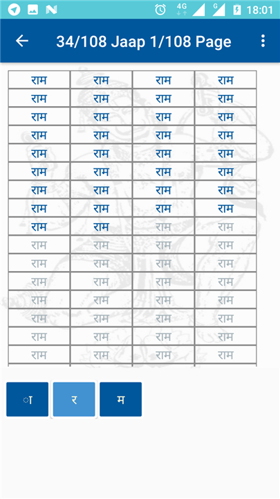 • Each page carries a watermark of Shree Hanuman, intended as a spiritual backdrop for the written Ramnaam.