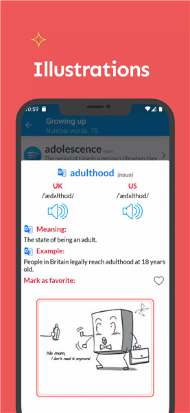The app boasts an impressive collection of over 10,000 IELTS words along with their full meanings.