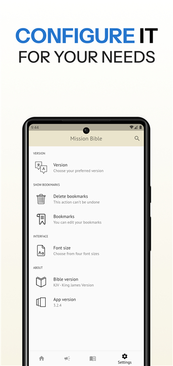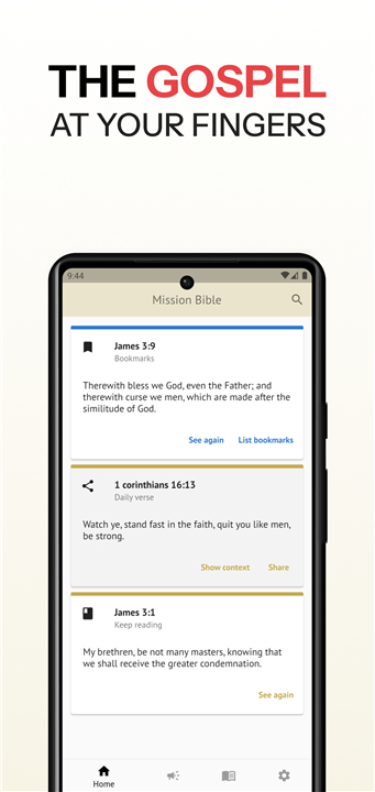 Study the Bible anytime in KJV, ESV & MSG with 20+ languages, devotionals & tools to grow your faith. Download the latest version of Mission Bible - KJV, ESV, MSG to enjoy new features and updates immediately!