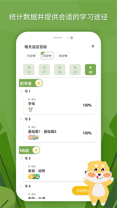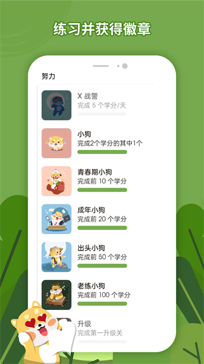 按日或周查看您的学习进展,每完成一节课后获得成就奖励,激励您不断前进。