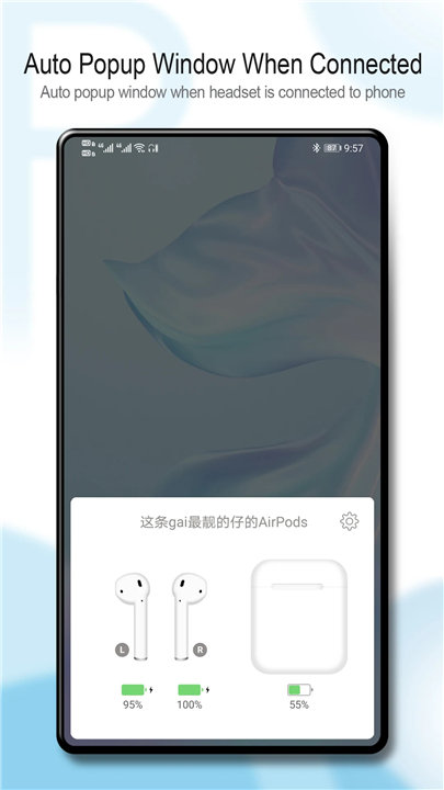 • When your AirPods or Beats are connected to your Android phone, PodsBattery automatically displays a simple pop-up window with battery information.