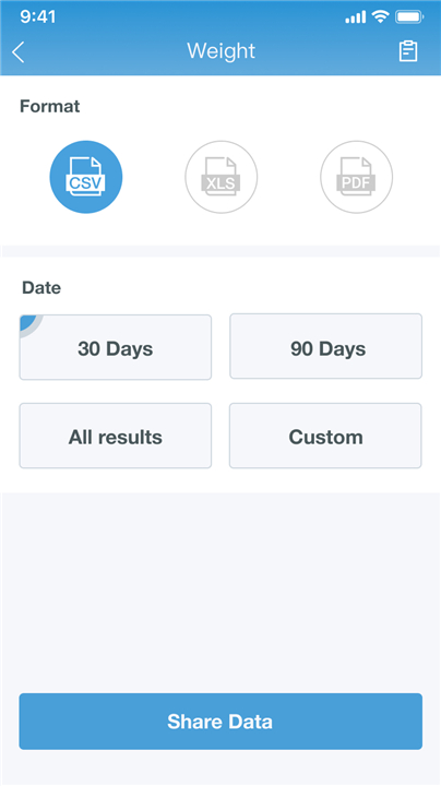 Once a measurement is taken with a connected device, results appear instantly in the app.