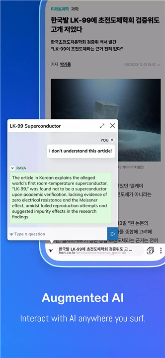 Beyond browsing, Raya enhances your experience by summarizing content, answering queries, and storing conversations securely on your device. Raya ensures personalized assistance while prioritizing your privacy.