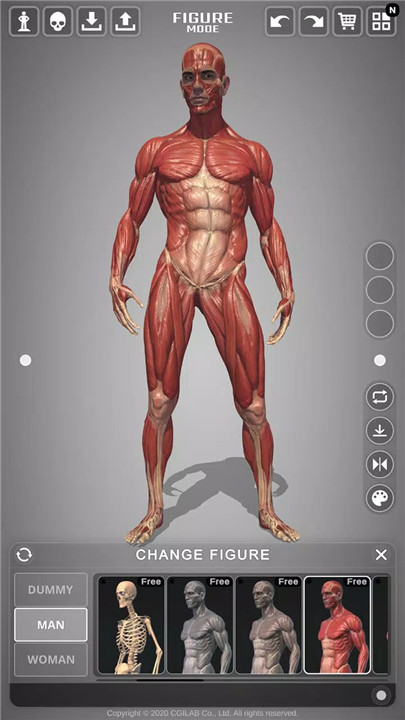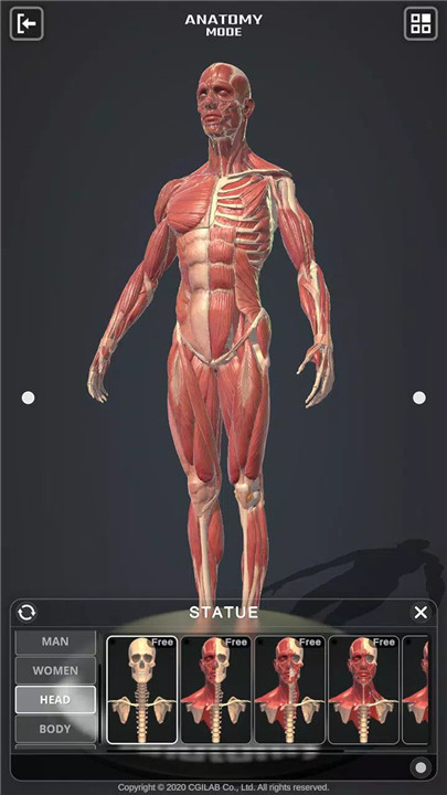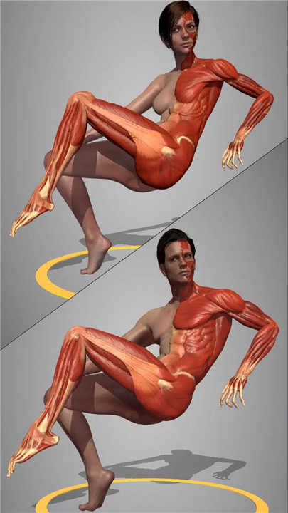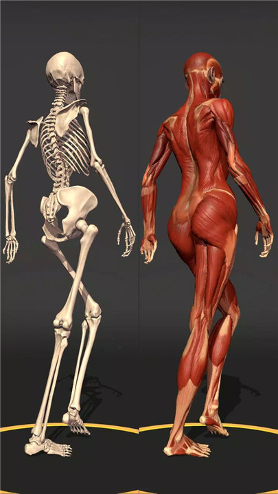 Anatomy Mode: This mode allows you to explore male and female anatomical structures, divided into bones and muscles. It’s perfect for studying how muscles and bones are structured and how they interact in various movements.