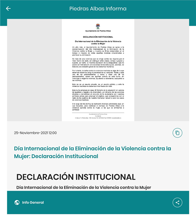 • Residents and friends of Piedras Albas are invited to download the application, connect with the service, and enjoy an open, direct channel of communication with the town council.