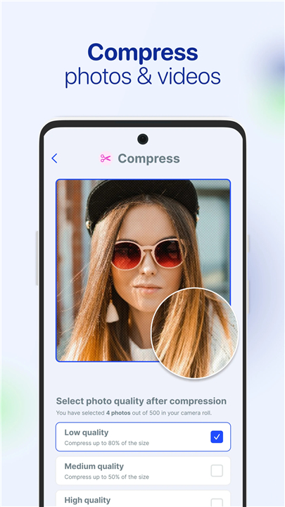 A: The app uses intelligent scanning to detect and remove junk files, duplicates, and old content that you no longer need. It can also compress photos and videos, which reduces their size without sacrificing quality, allowing you to reclaim precious storage space.
