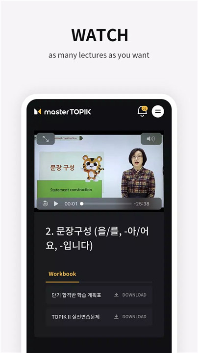 Unlimited access to Basic Korean and TOPIK I & II lessons.
