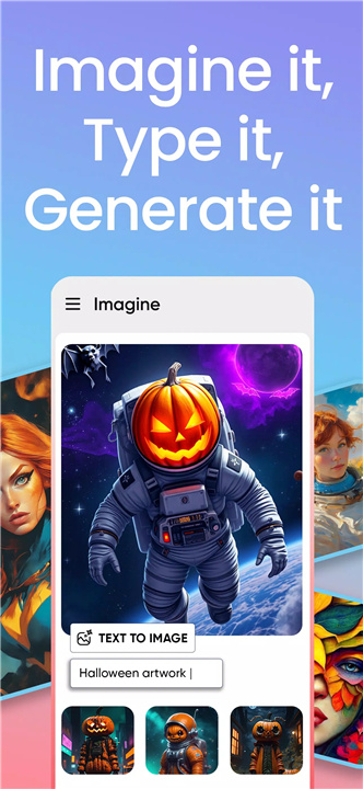 ImagineArt,敲击文字输入,点选画风模式,瞬间就能生成意想不到的美妙图画,画廊般的多样画作任您挑选!想象无穷,构想无限!