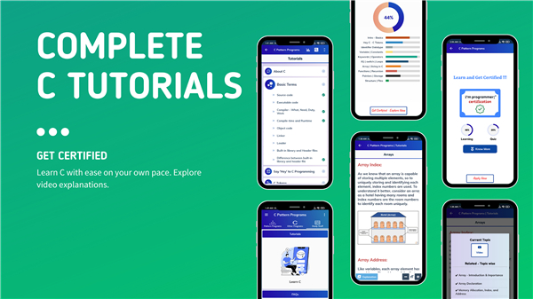 Complete C Tutorials - Now get access to complete C tutorials in the app itself.
