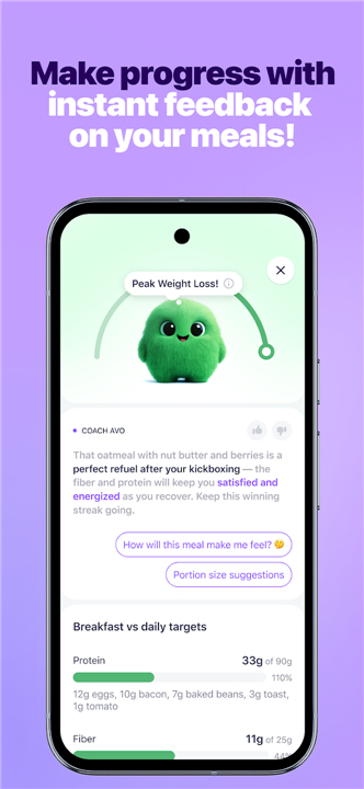 • Our unique blend of personalized AI coaching, intuitive food guidance, and accessible workouts helps you stay consistent without calorie obsession.