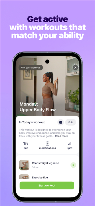 + Build strength and stay active with workouts you'll actually enjoy and stick to.