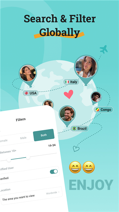 • Experience the excitement of expanding your social circle beyond geographic boundaries.