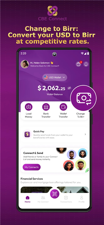 • With support for both Ethiopian Birr (ETB) and US Dollars (USD), CBE Connect offers a seamless way to handle multiple currencies within a single application.