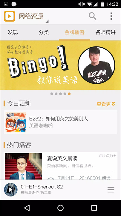 朗易思听每天都会更新托福TPO、科学60秒、VOA常速、VOA慢速、BBC双语新闻、《经济学人》等多种学习内容。