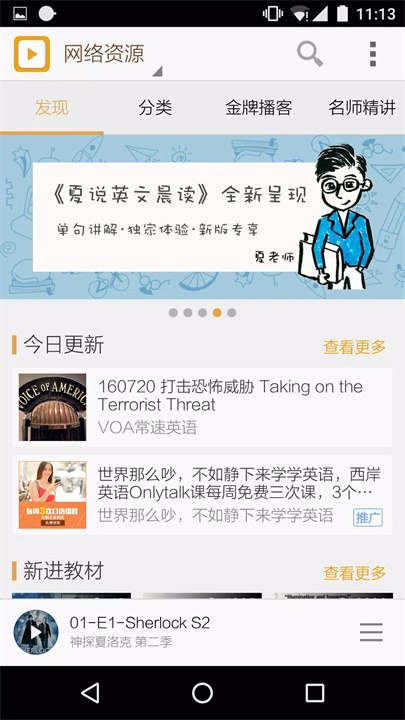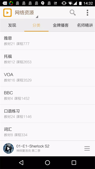 朗易思听提供了丰富的学习内容,包括托福TPO、剑桥雅思听力真题、英语时事新闻、热门美剧、经典演讲、有声读物、诗歌以及各种品牌英语教材。