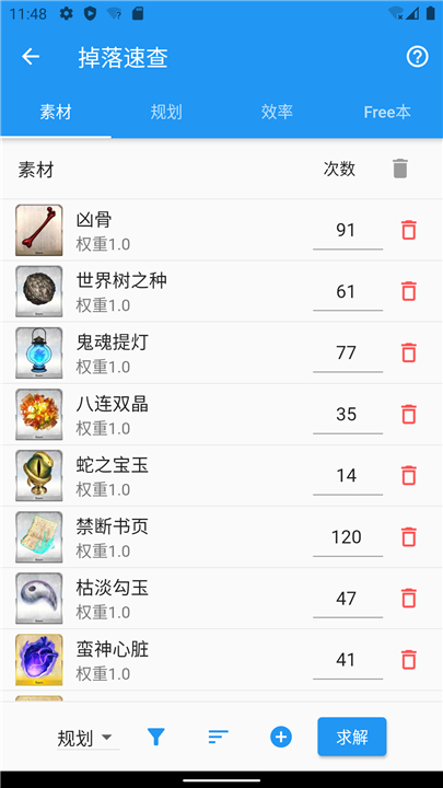 • Provides a material planner that calculates the number of items required for skills, ascensions, and append abilities.