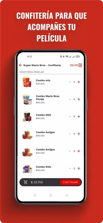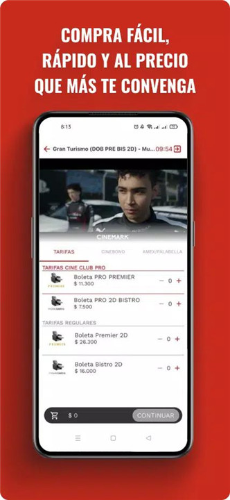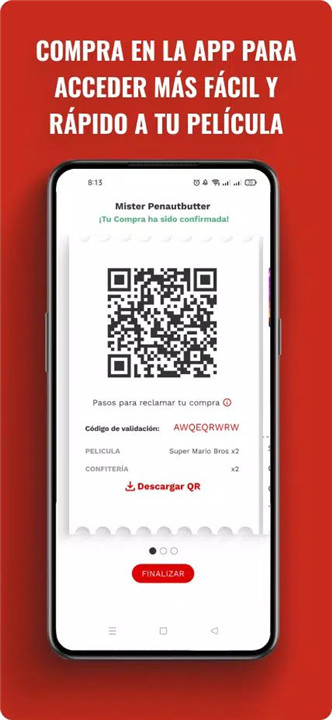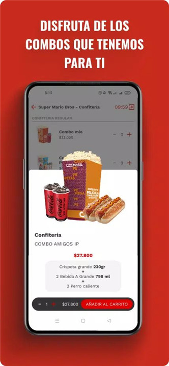 Avoid lines and last-minute stress. With the app, you can purchase movie tickets instantly for any Cinemark theater in Colombia, at any time. Pick your seats, confirm your payment, and you're ready to go.
