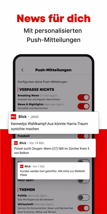 Blick is one of Switzerland’s leading media brands, known for delivering stories that truly move the country. With a diverse range of coverage spanning news, sports, politics, business, society, and people, Blick ensures that no story goes unnoticed. Backed by Switzerland's largest newsroom, Blick’s team of journalists work around the clock to break down complex topics into clear, accessible stories for everyone. With the Blick app, you can take the heartbeat of Switzerland with you wherever you go.