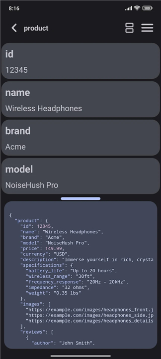 • View raw JSON code alongside the structured list format.