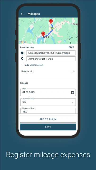 • Track Mileage Effortlessly: Utilize map-guided navigation for precise, automatic distance calculations.